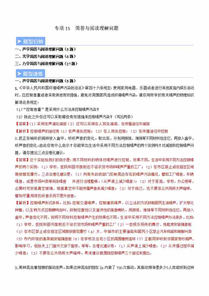 专项15 简答与阅读理解问题(重难点训练)(解析版)