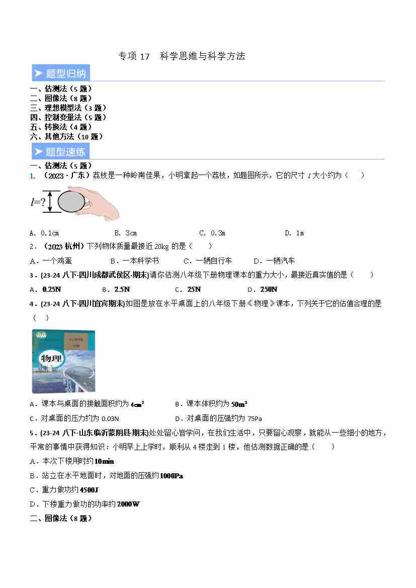 专项17 科学思维与科学方法 (重难点训练)(原卷版)