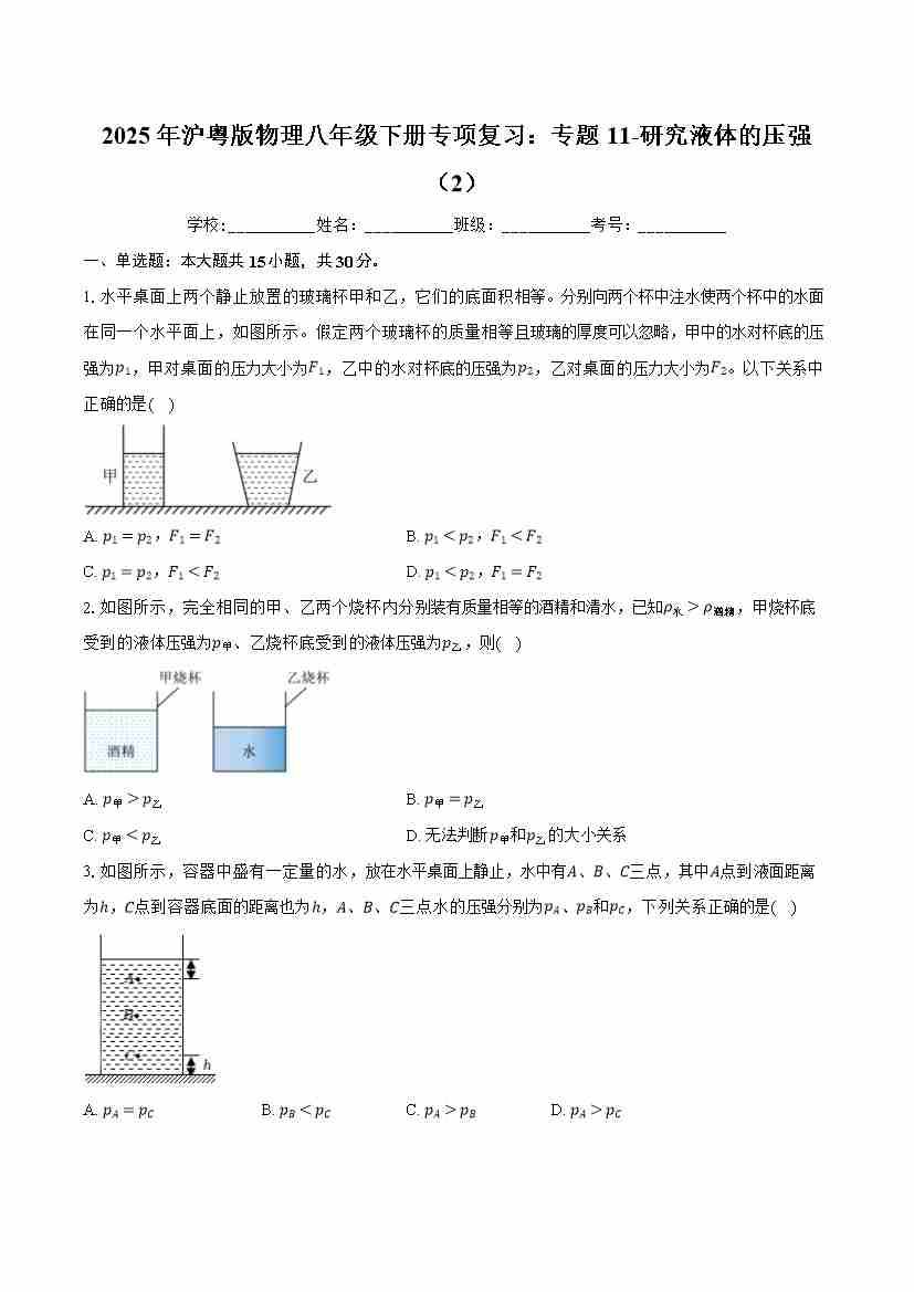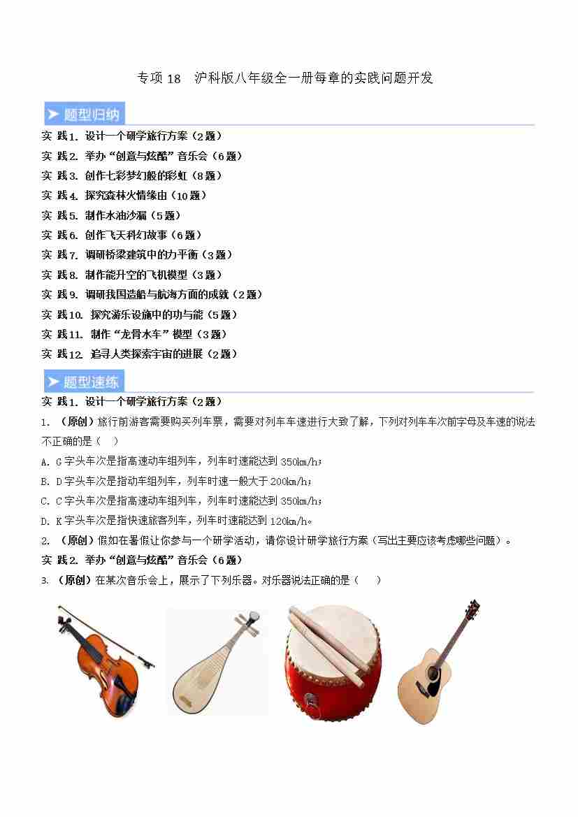专项18 沪科版八年级全一册每章的实践问题开发 (重难点训练)(原卷版)