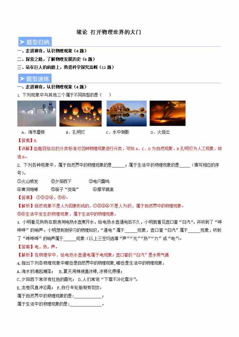 绪论 打开物理世界的大门(重难点训练)(解析版)