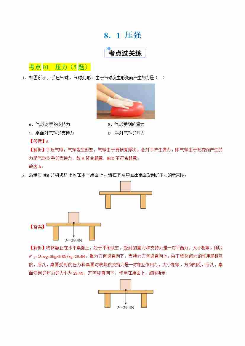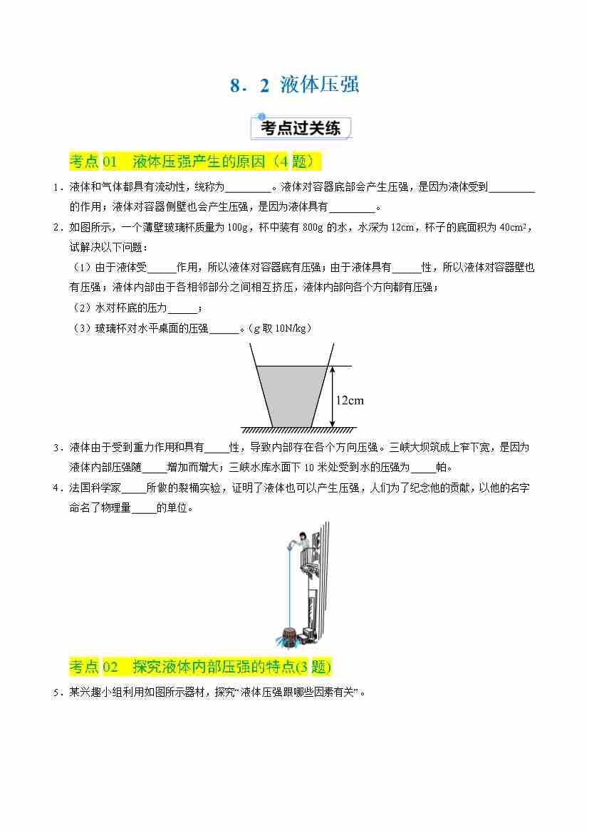 8.3 大气压与人类生活(分层练习)(原卷版)
