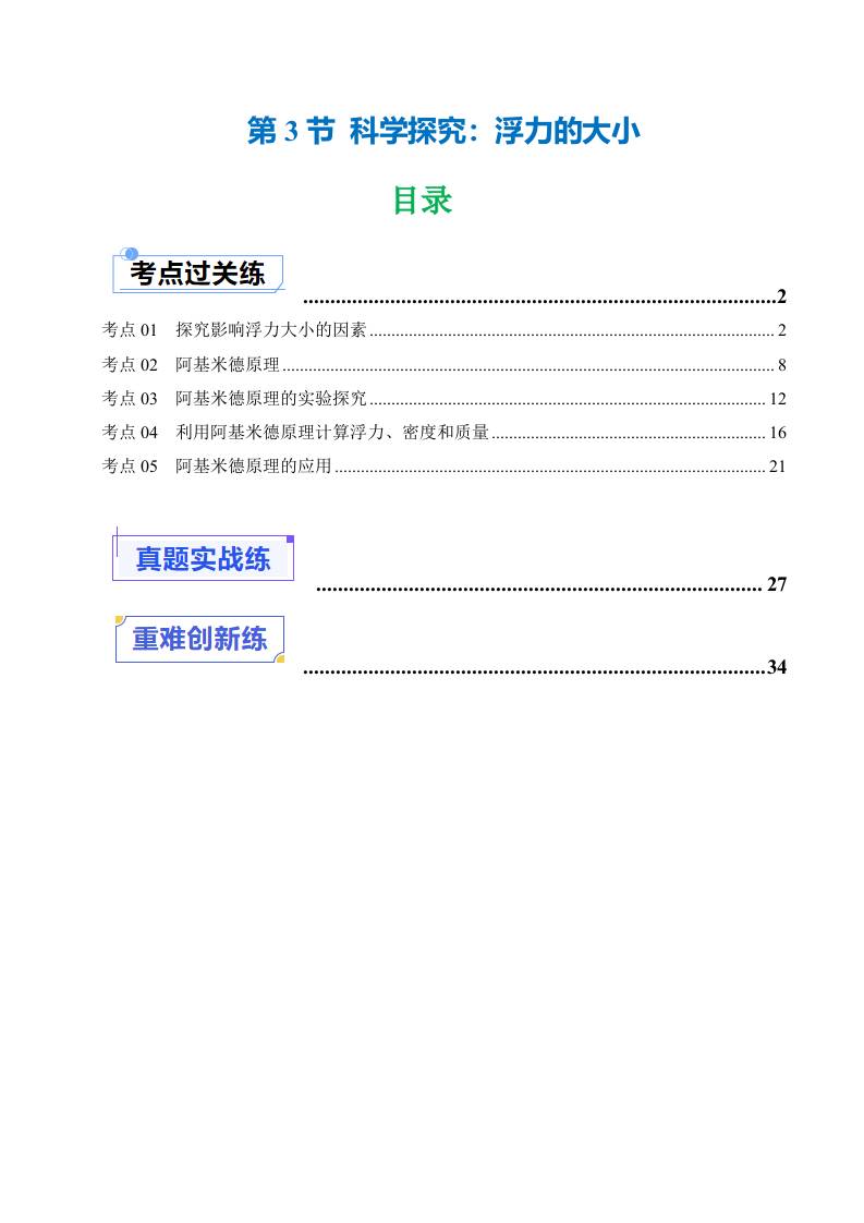 10.3科学探究:浮力的大小(分层练习)(原卷版)