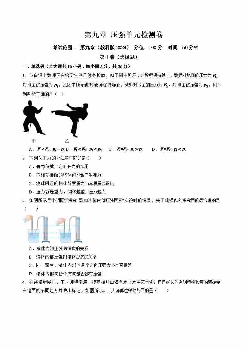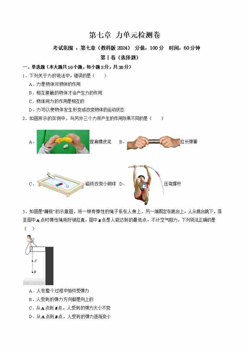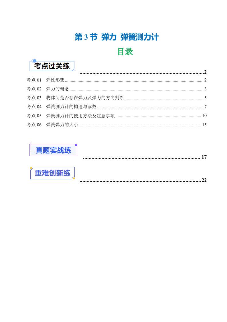 7.3弹力 弹簧测力计(分层练习)(原卷版)