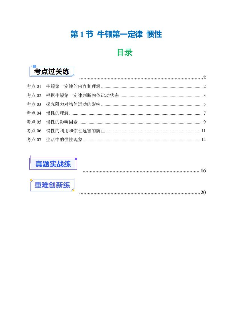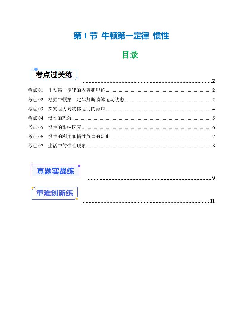 8.1牛顿第一定律 惯性(分层练习)(原卷版)