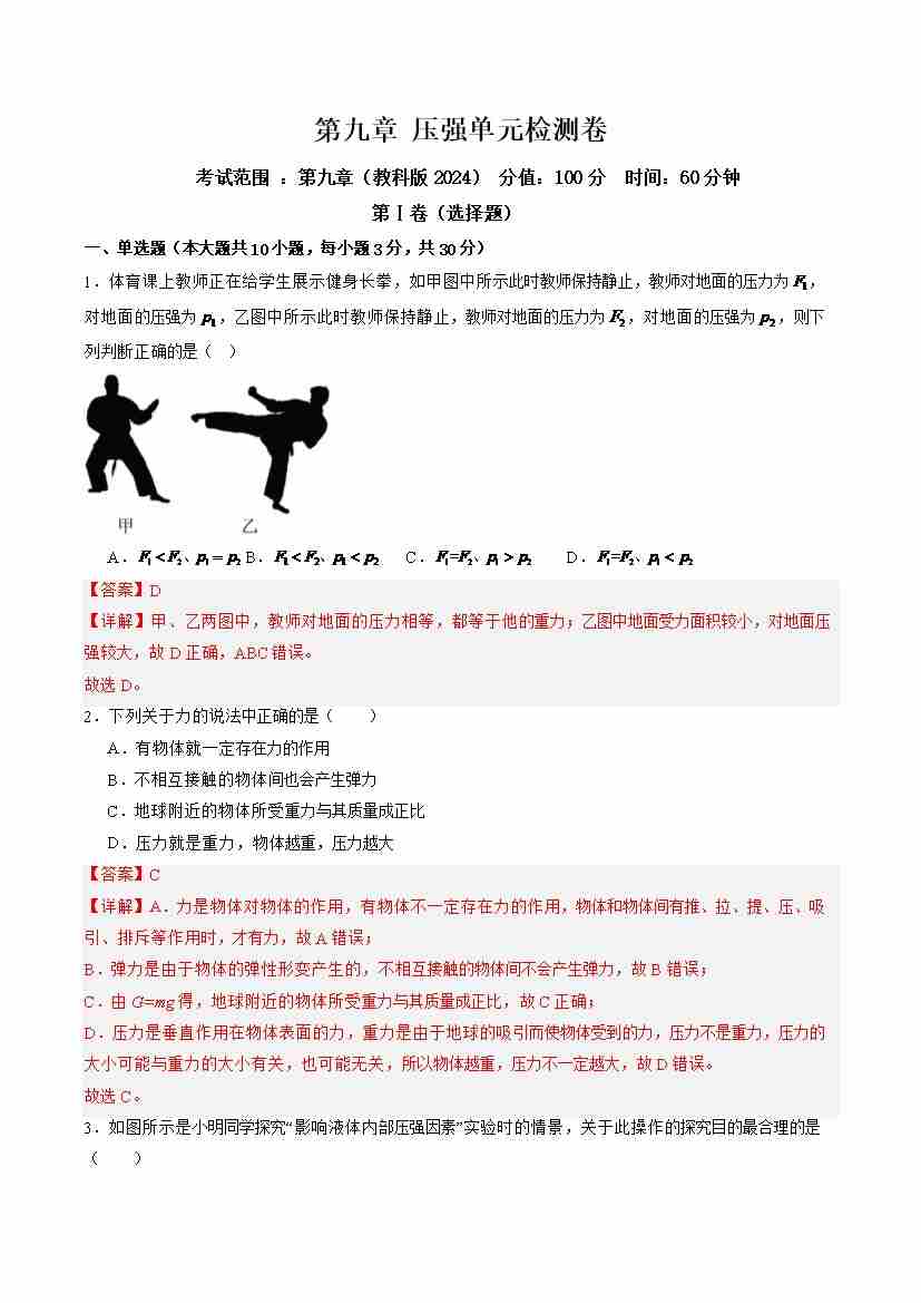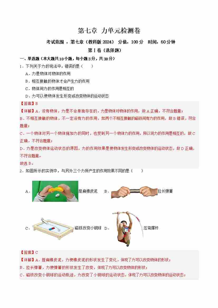 7.3弹力 弹簧测力计(分层练习)(解析版)