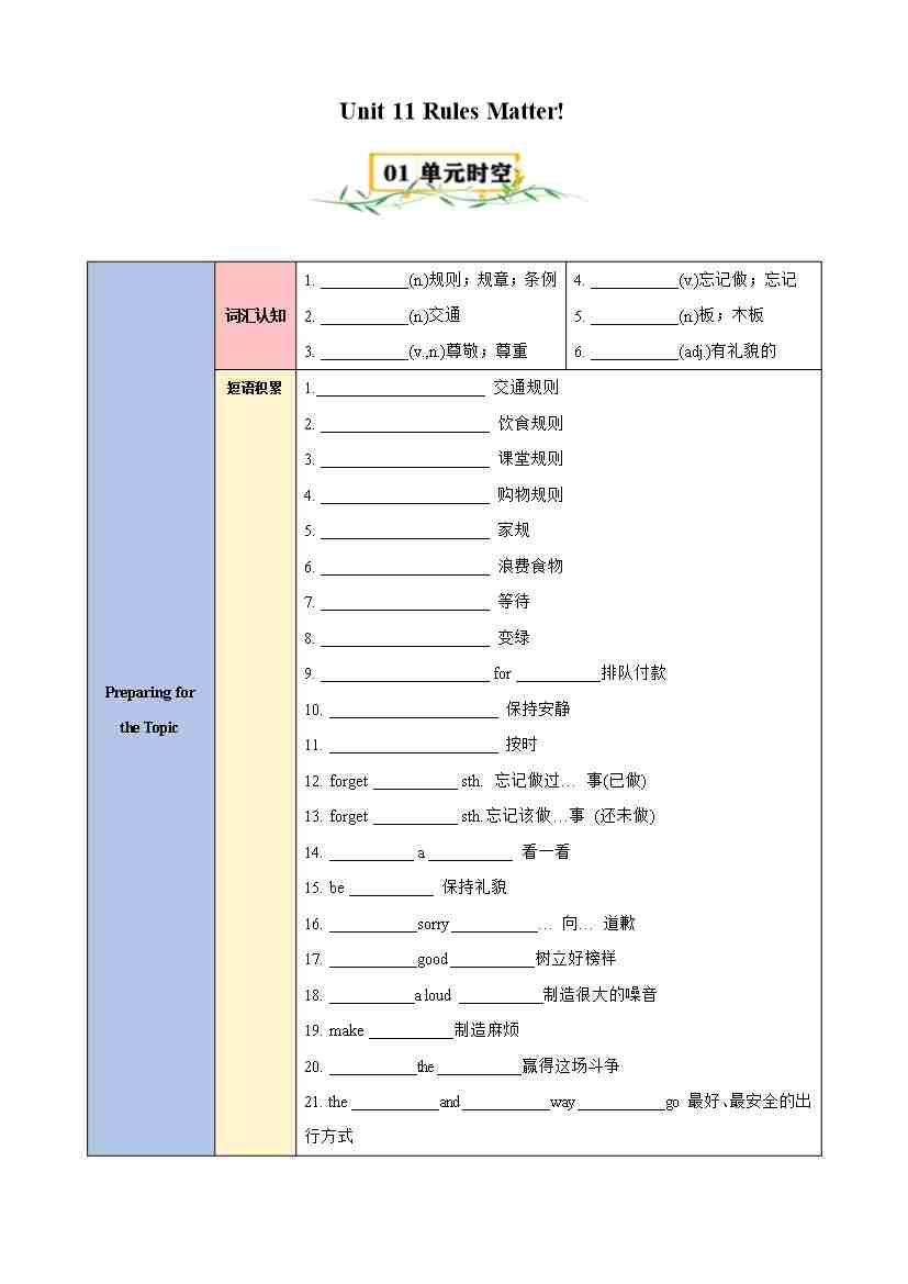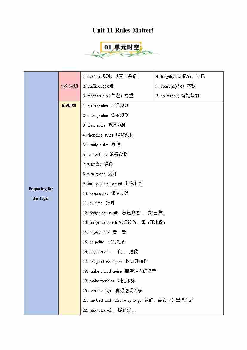 Unit 11 Rules Matter!(知识清单)(仁爱版)(教师版)