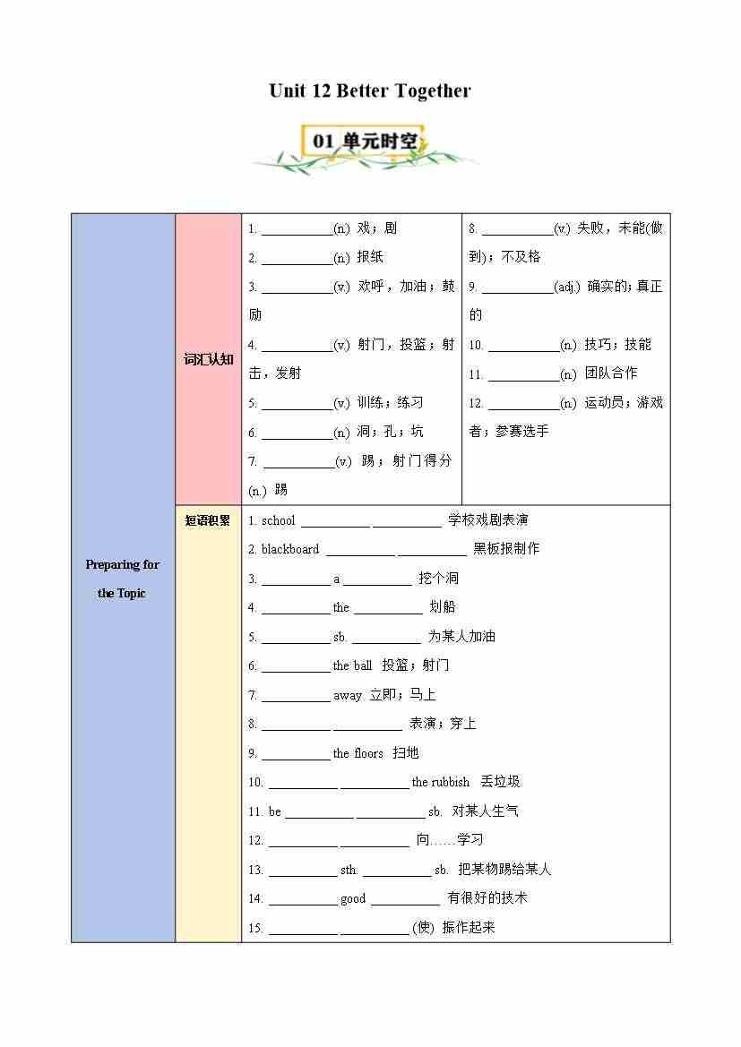 Unit 12 Better Together(知识清单)(原卷版)