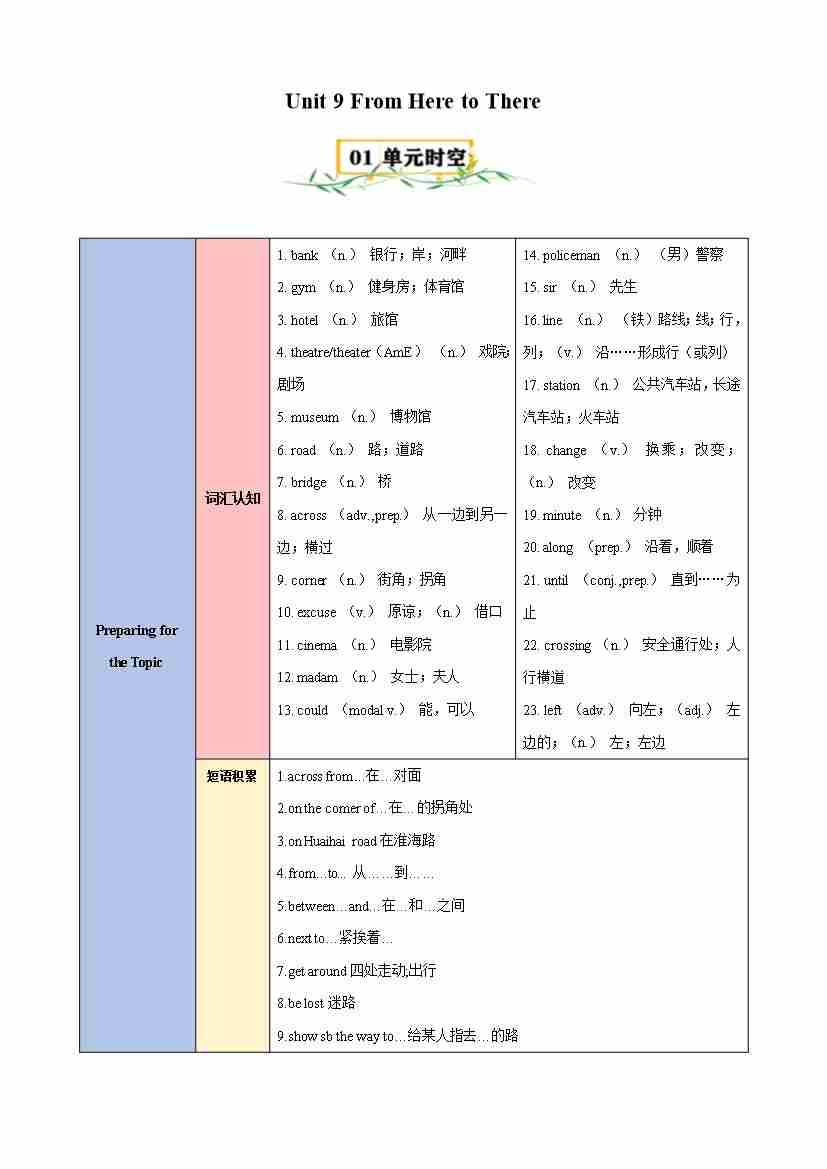 Unit 9 From Here to There(知识清单)(仁爱版)(教师版)