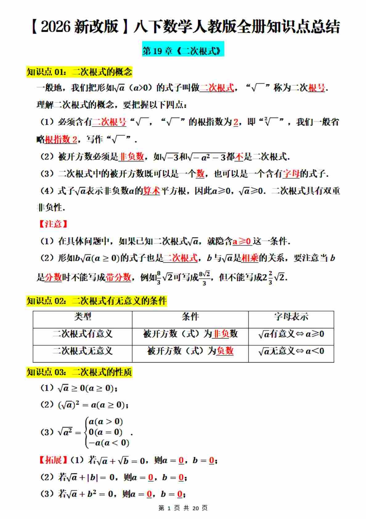 2026年八年级下册数学人教版全册知识点总结