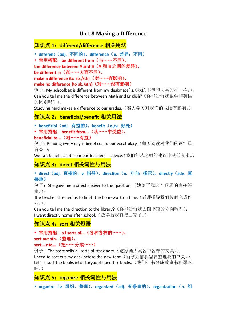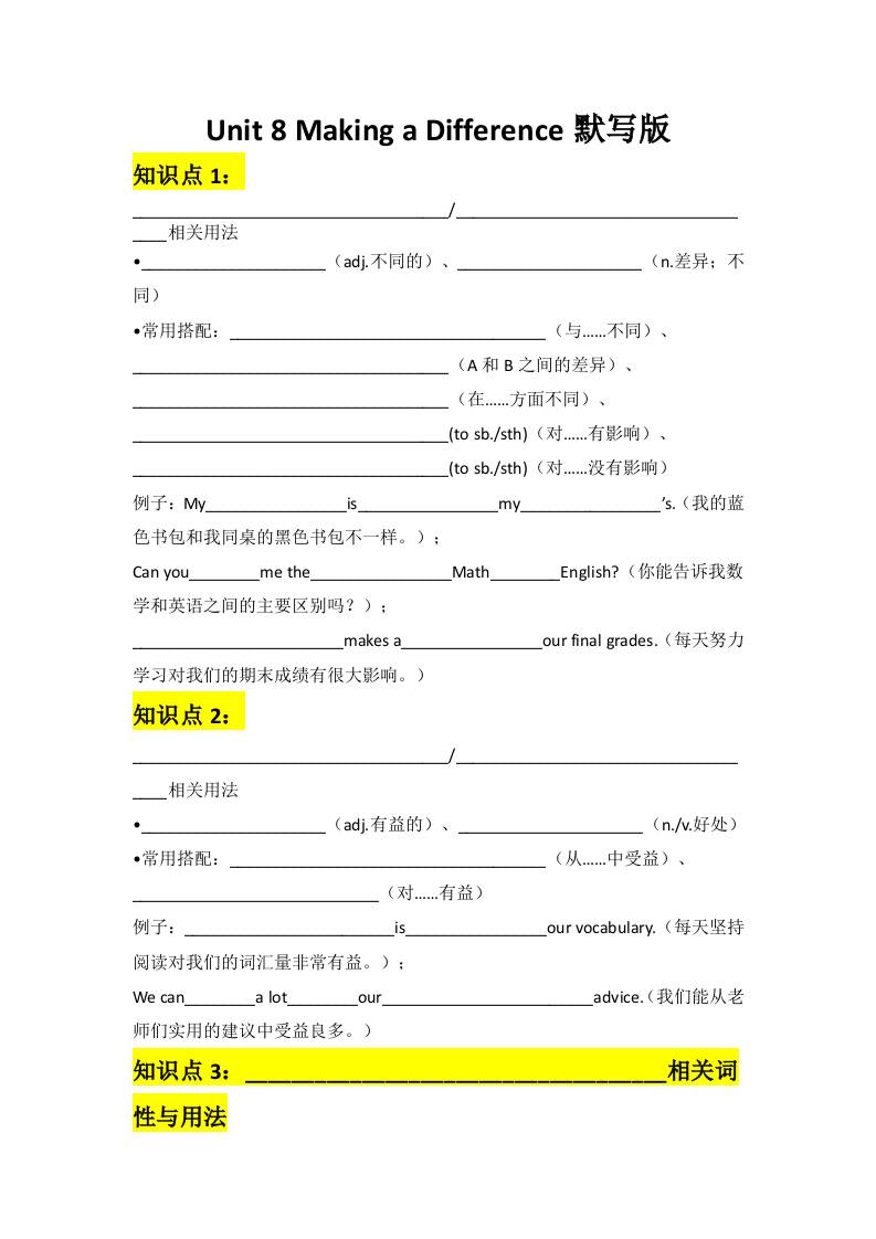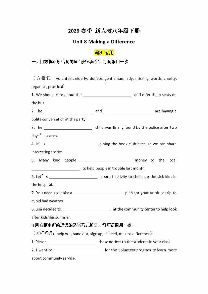 Unit 8 Making a Difference默写版
