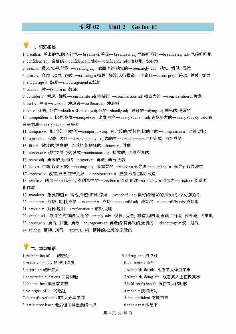 专题02 Unit2 Go for it!同步讲义(教师版)