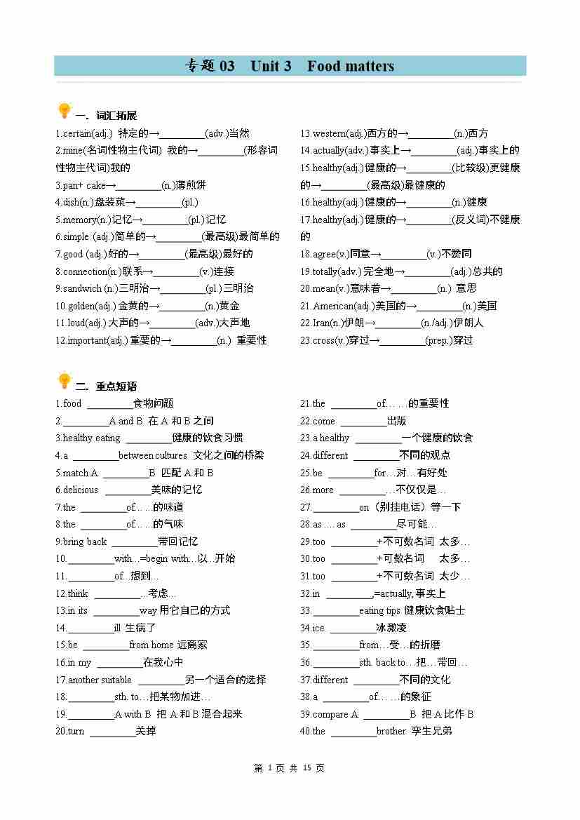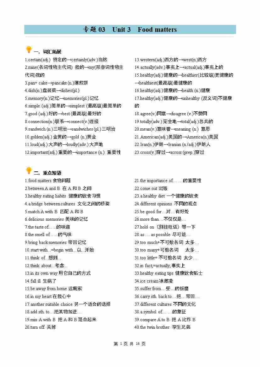 专题03 Unit 3 Food matters 同步讲义(学生版)