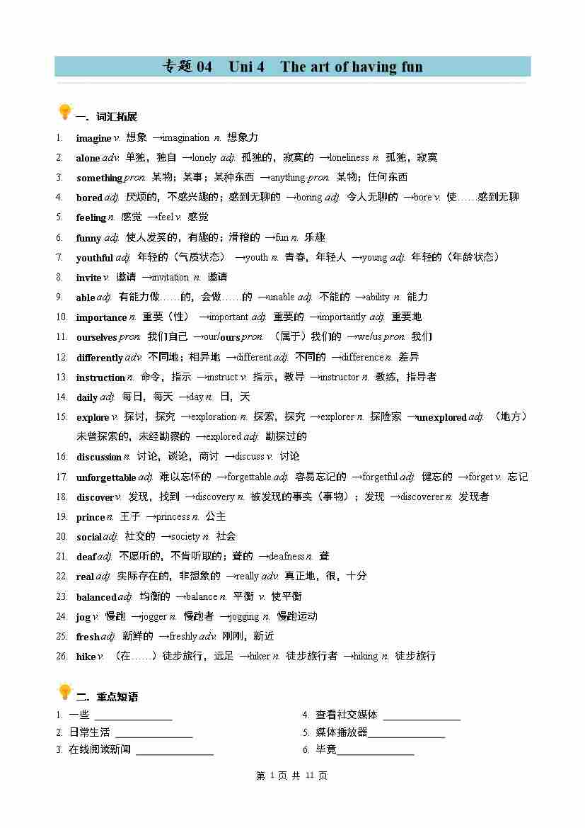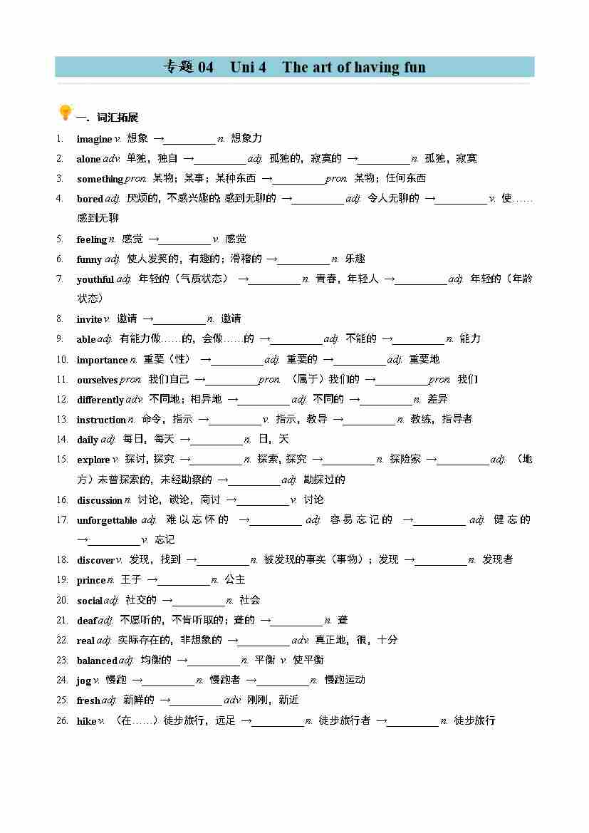 专题04 Unit 4 The art of having fun 同步讲义(学生版)