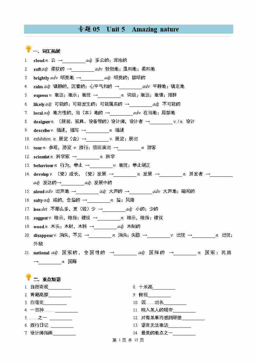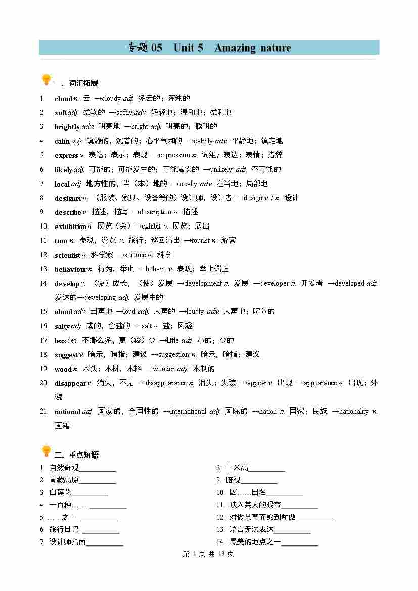专题05 Unit 5 Amazing nature 同步讲义(教师版)