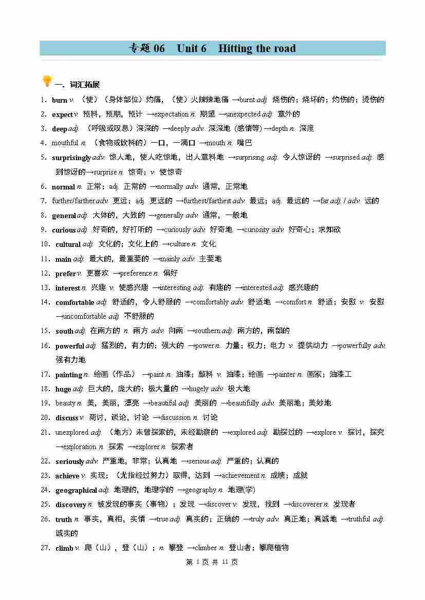专题06 Unit 6 Hitting the road 同步讲义(教师版)