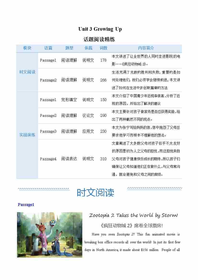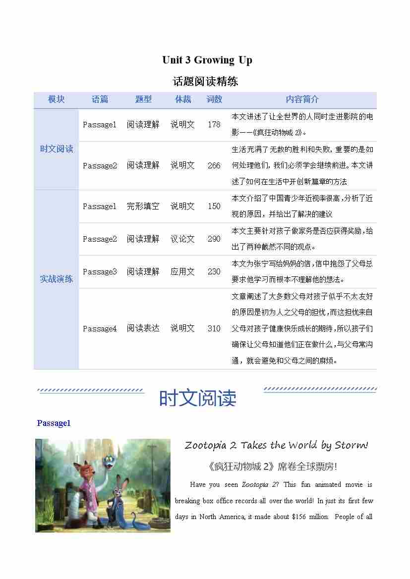Unit 3 Growing Up(话题阅读精练)(解析版)