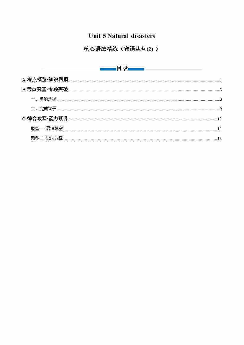 Unit 5 Natural disasters 宾语从句(2)(单元核心语法精练)(原卷版)