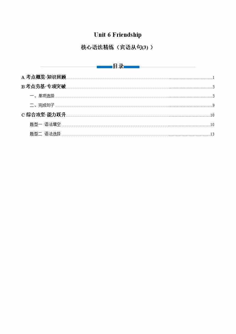 Unit 6 Friendship 宾语从句(3)(单元核心语法精练)(原卷版)