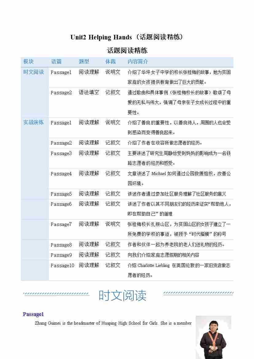 Unit2 Helping Hands (话题阅读精练)(原卷版)