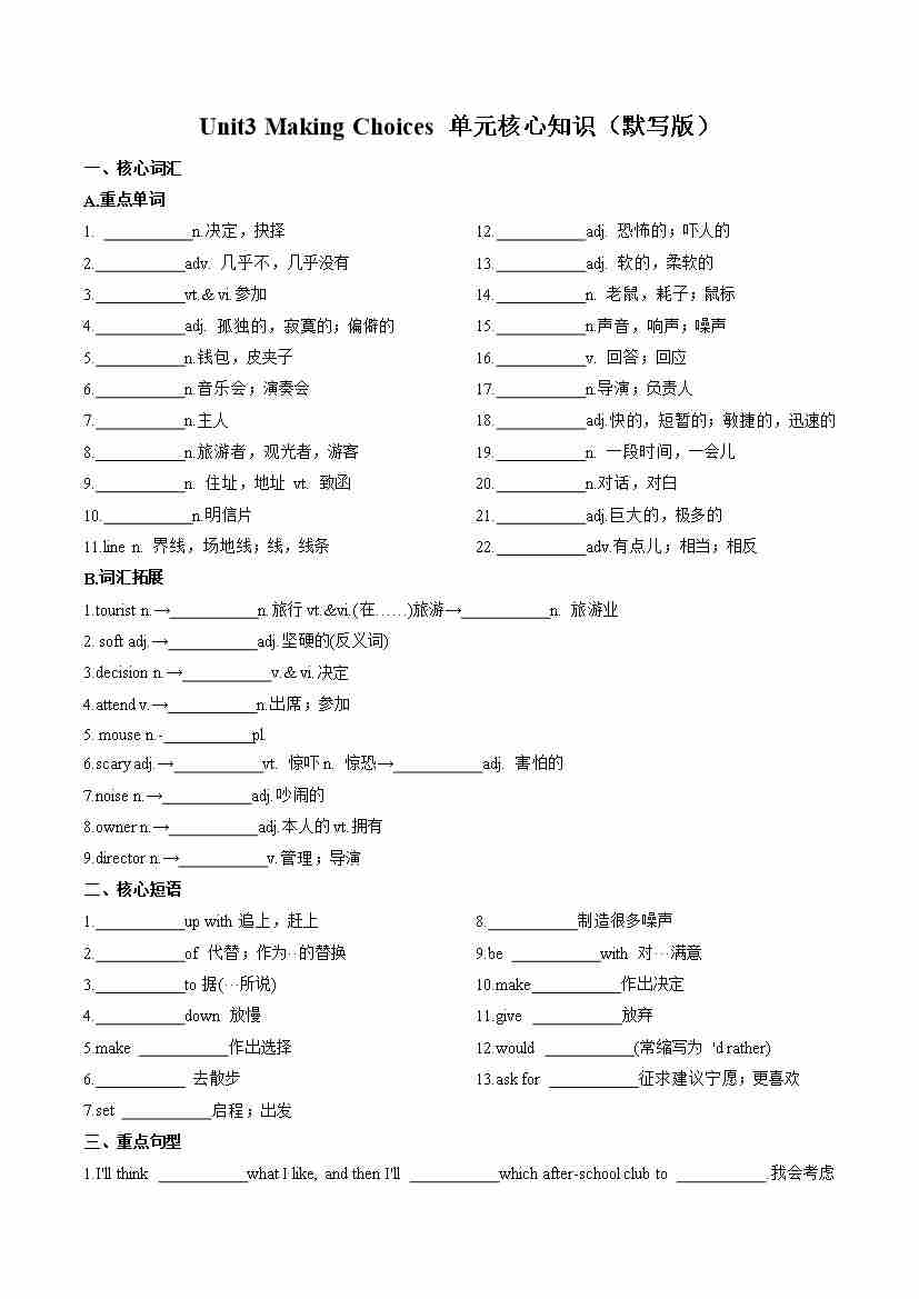 Unit3 Making Choices 单元核心知识(背诵默写任务单)(默写版)