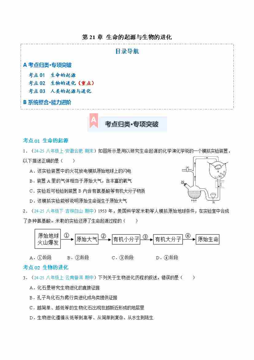 第21章 生命的起源与生物的进化(专项训练)(原卷版)