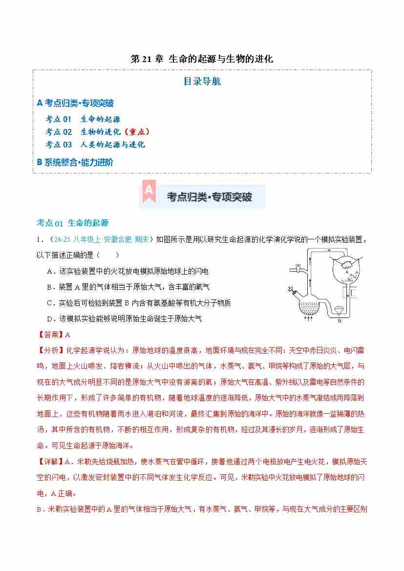第21章 生命的起源与生物的进化(专项训练)(解析版)
