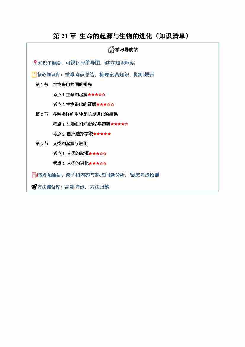 第21章 生命的起源与生物的进化(知识清单)(原卷版)