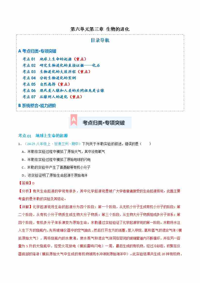 第六单元第三章 生物的进化(专项训练)(解析版)