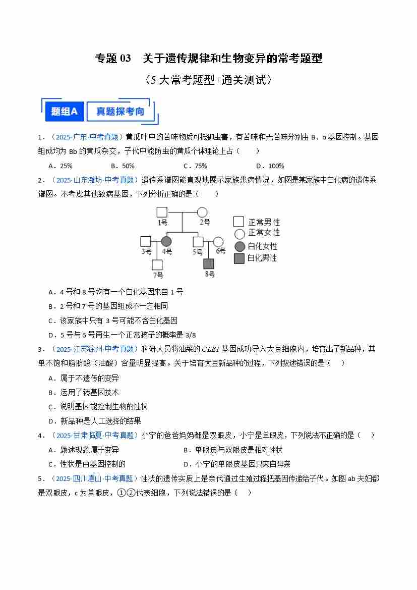 专题03 关于遗传规律和生物变异的常考题型(重难点训练)(原卷版)