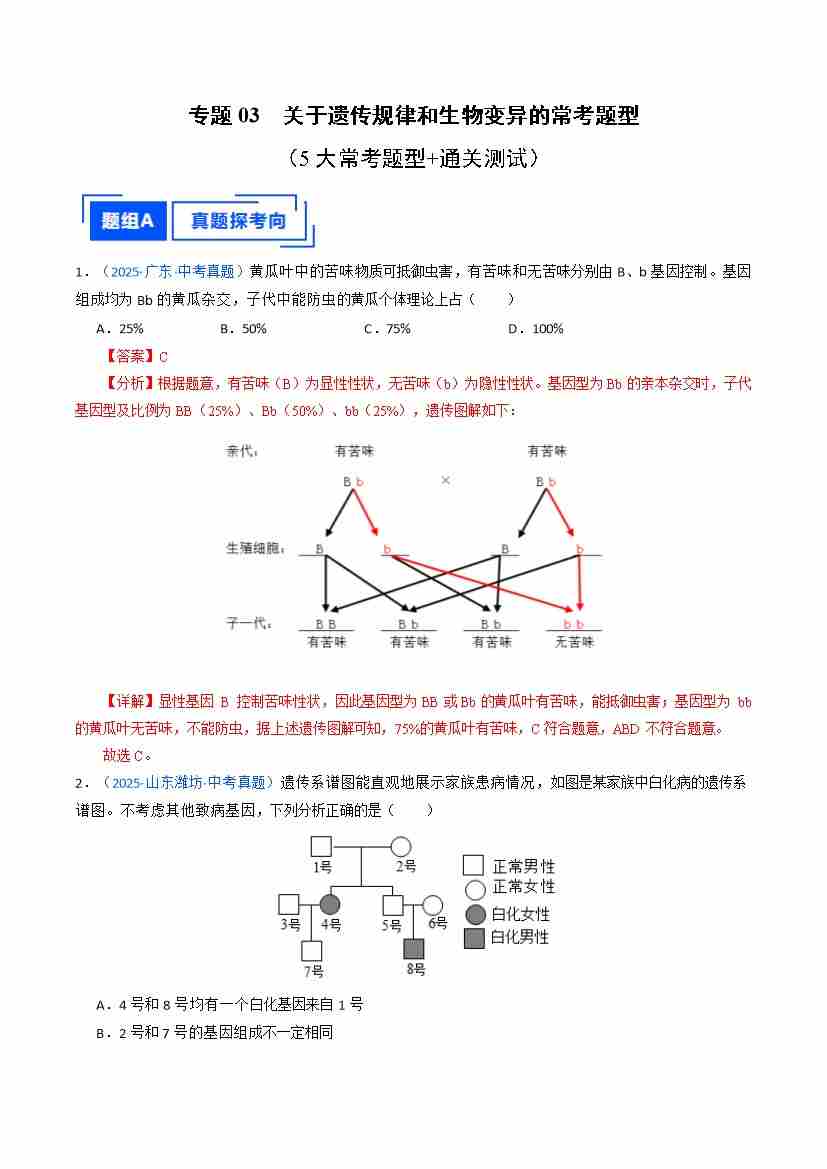 专题03 关于遗传规律和生物变异的常考题型(重难点训练)(解析版)