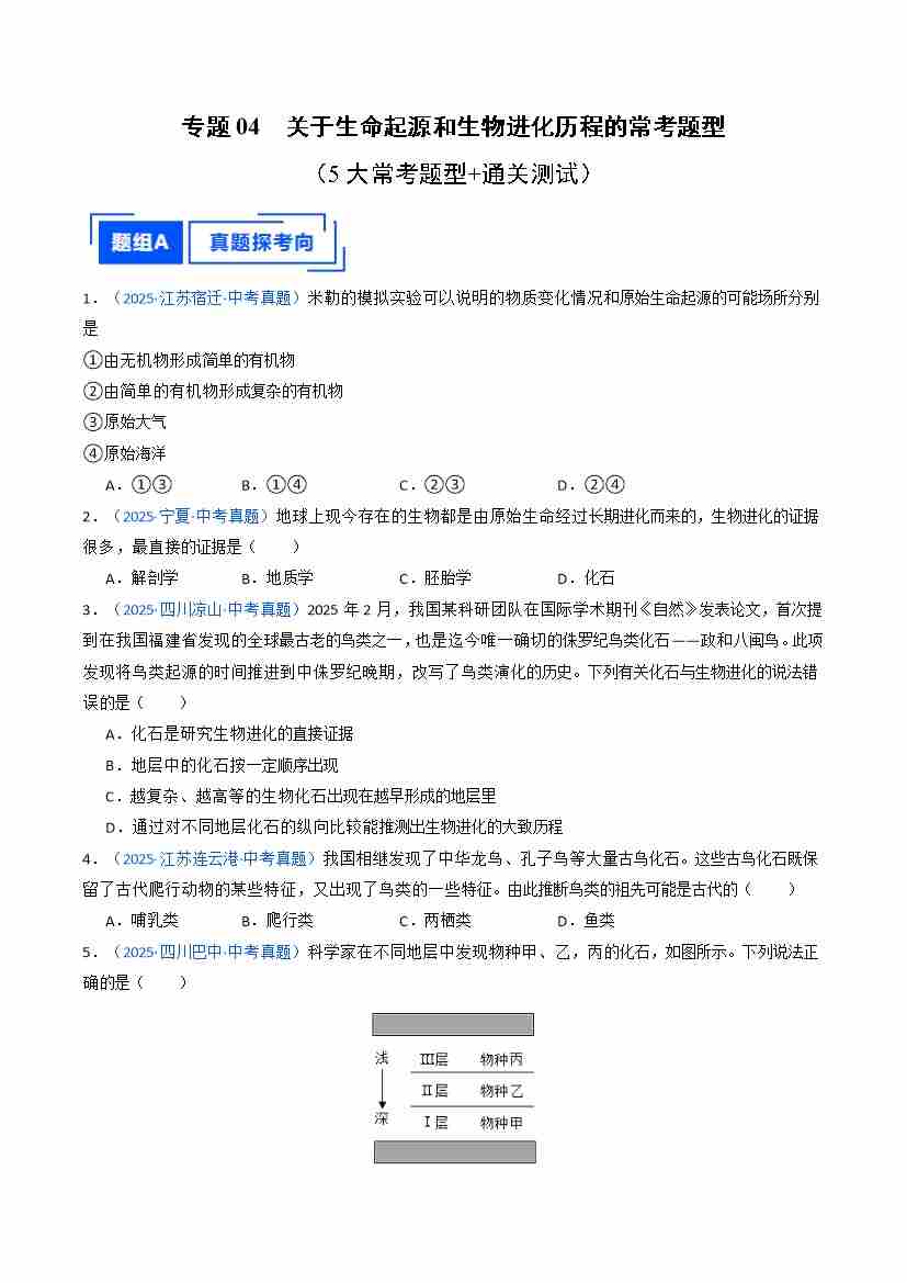 专题04 关于生命起源和生物进化历程的常考题型(重难点训练)(原卷版)