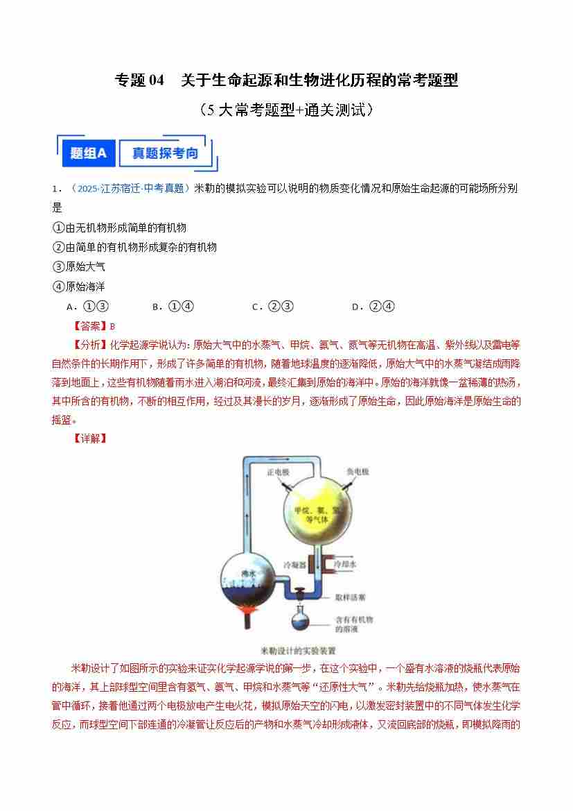 专题04 关于生命起源和生物进化历程的常考题型(重难点训练)(解析版)