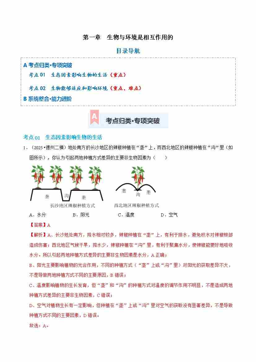 第八单元第一章 生物与环境是相互作用的(专项训练)(解析版)