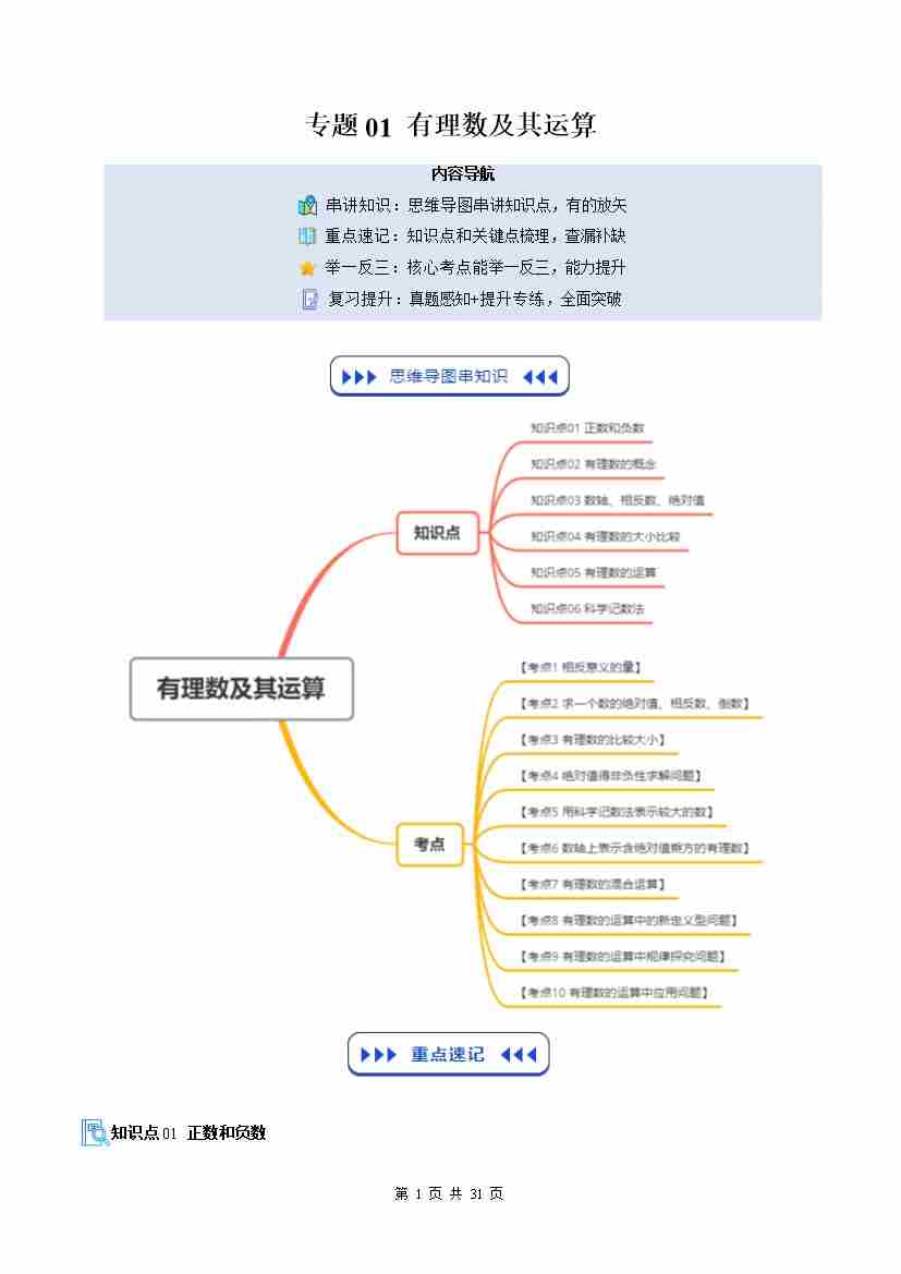 ①寒假复习-专题01 有理数及其运算(6大知识点10大考点复习提升)(教师版)-2026年七年级数学寒假衔接讲练 (北师大版-新教材)