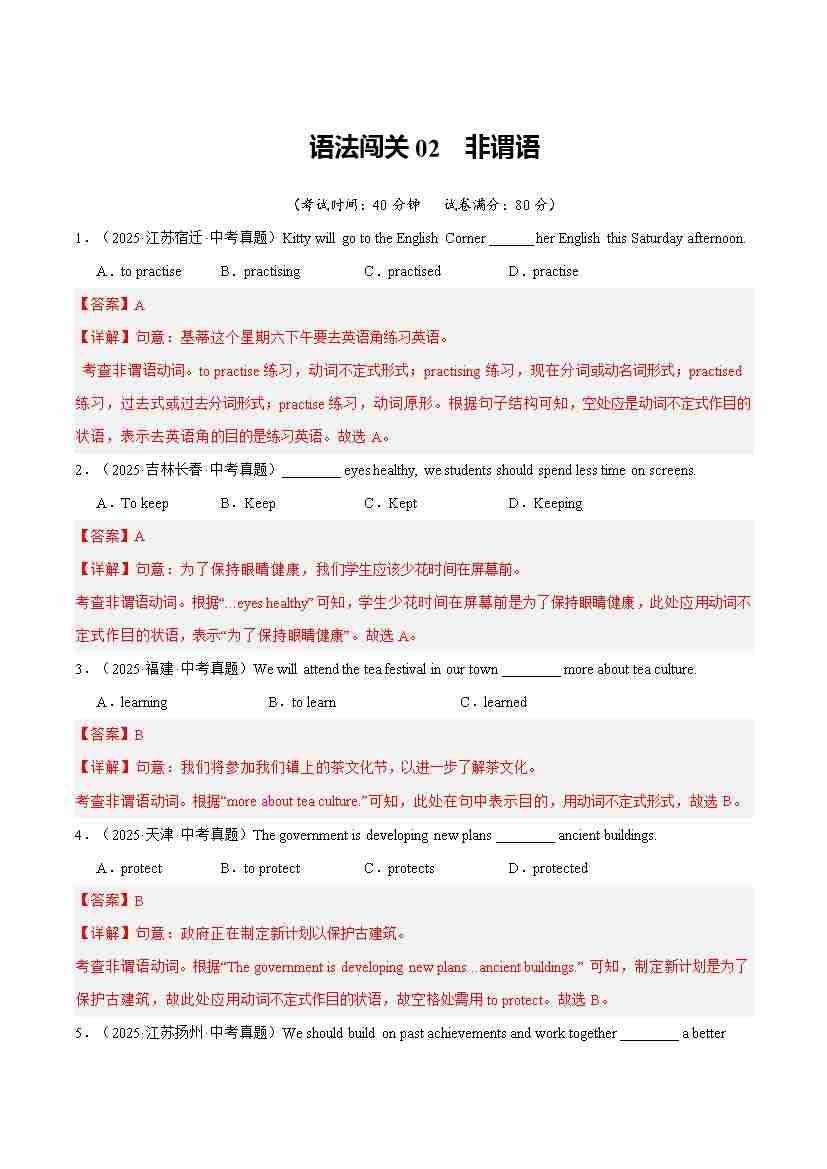 Part 3 词汇语法综合练语法闯关02 非谓语动词(培优综合训练)(全国通用)(解析版)