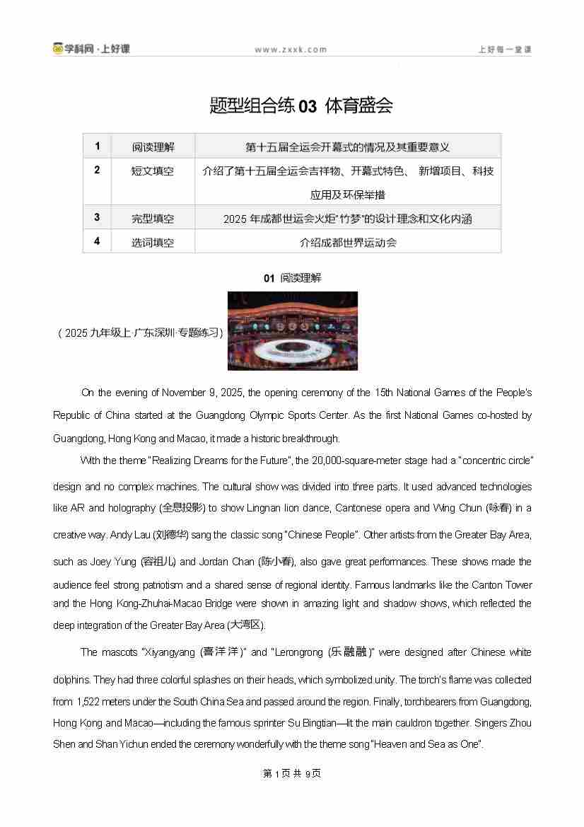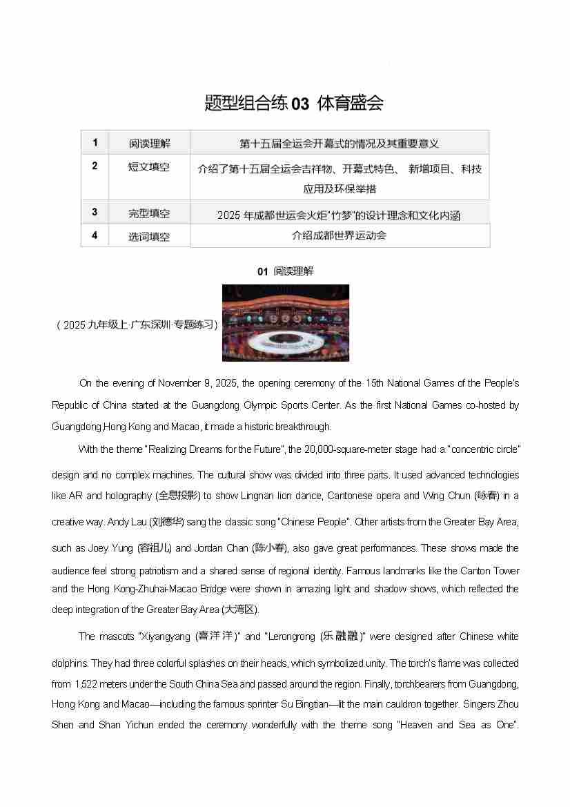 Part 4 必考题型组合练题型组合练03 体育盛会(阅读理解短文填空完形填空选词填空)(培优综合训练)(全国通用)(原卷版)
