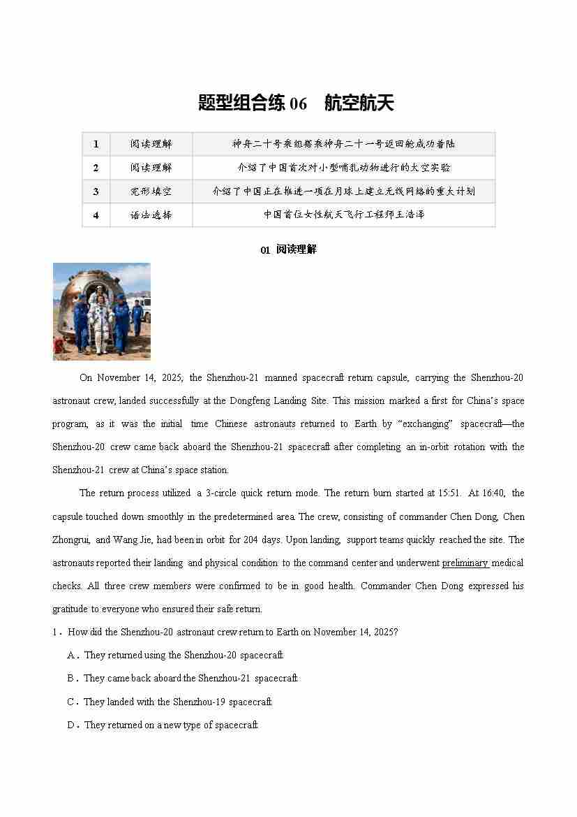 Part 4 必考题型组合练题型组合练题型组合练06 航空航天(阅读理解阅读理解完形填空语法选择)(培优综合训练)(全国通用)(解析版)
