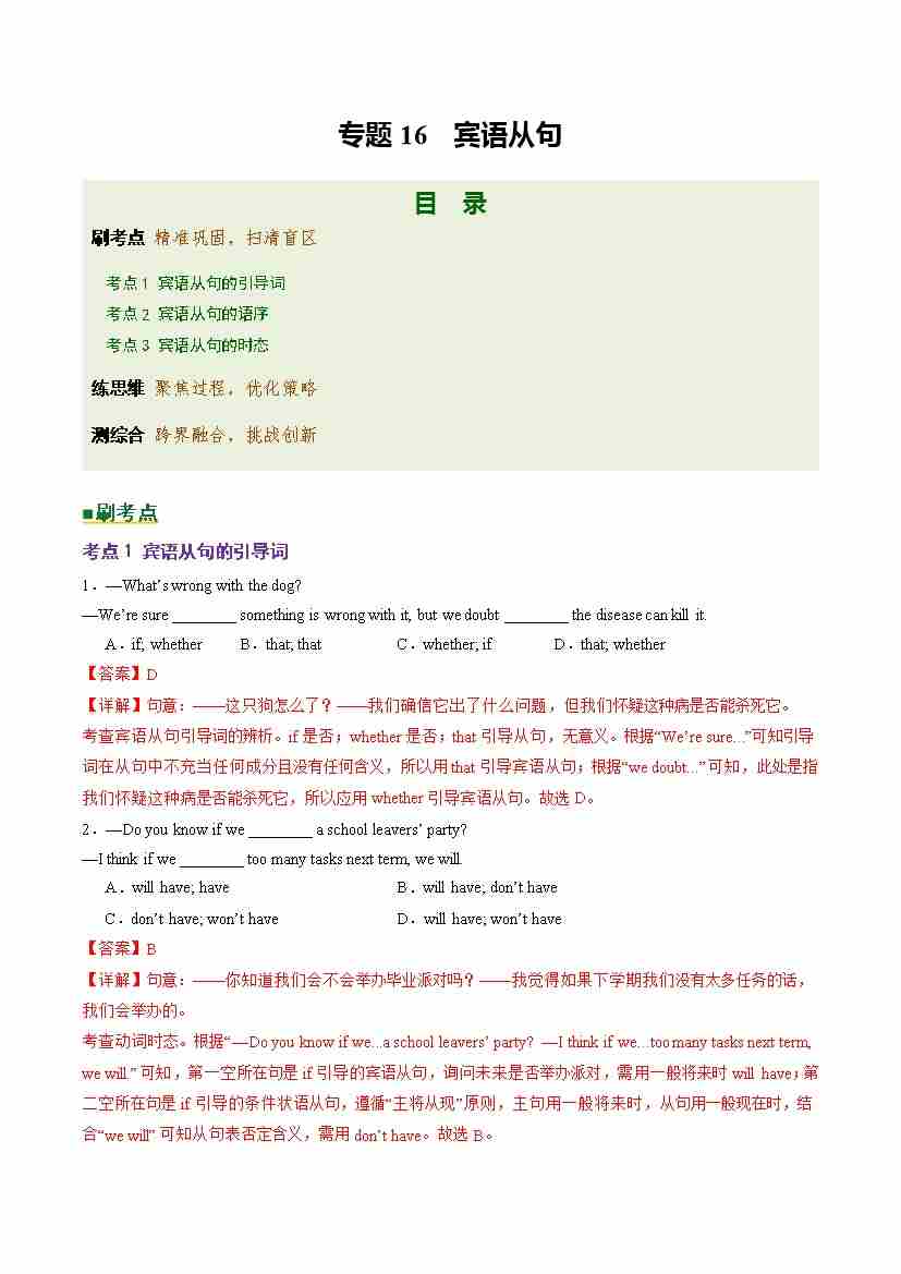 Part 1 核心语法精讲专题专题16 宾语从句(培优专练)(全国通用)(解析版)