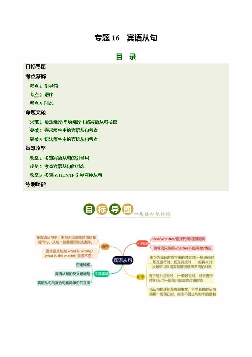 Part 1 核心语法精讲专题专题16 宾语从句(培优讲义)(全国通用)(解析版)