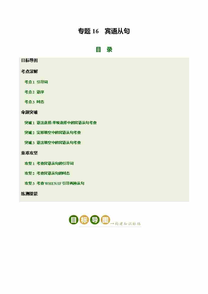Part 1 核心语法精讲专题专题16 宾语从句(培优讲义)(全国通用)(原卷版)