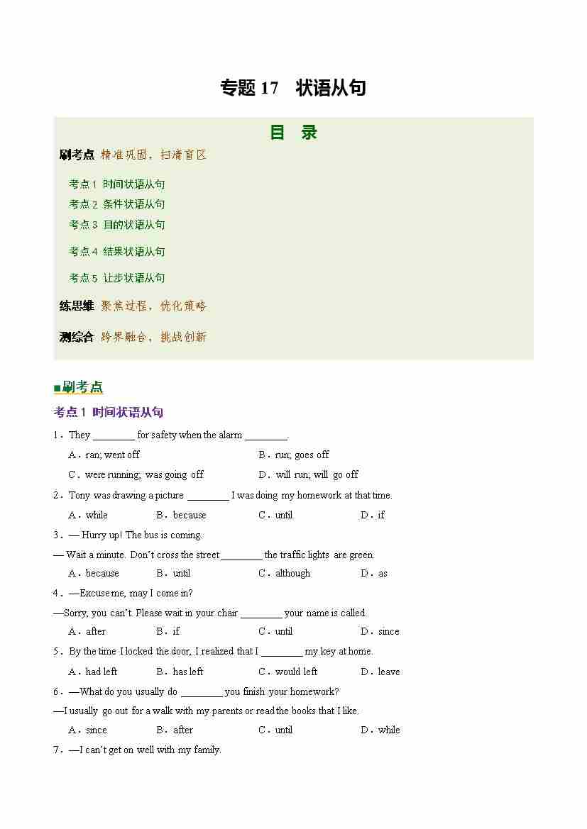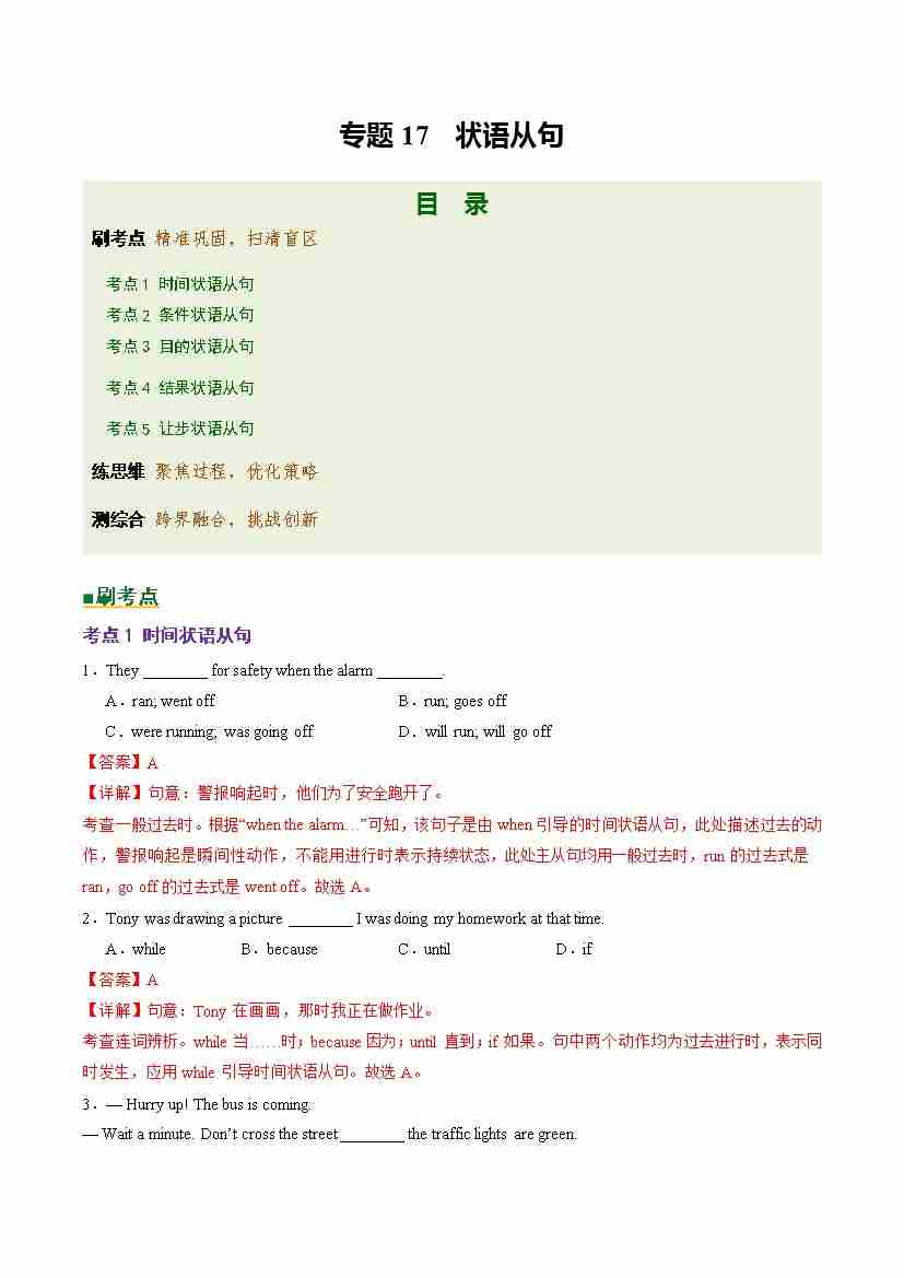 Part 1 核心语法精讲专题专题17 状语从句(培优专练)(全国通用)(解析版)