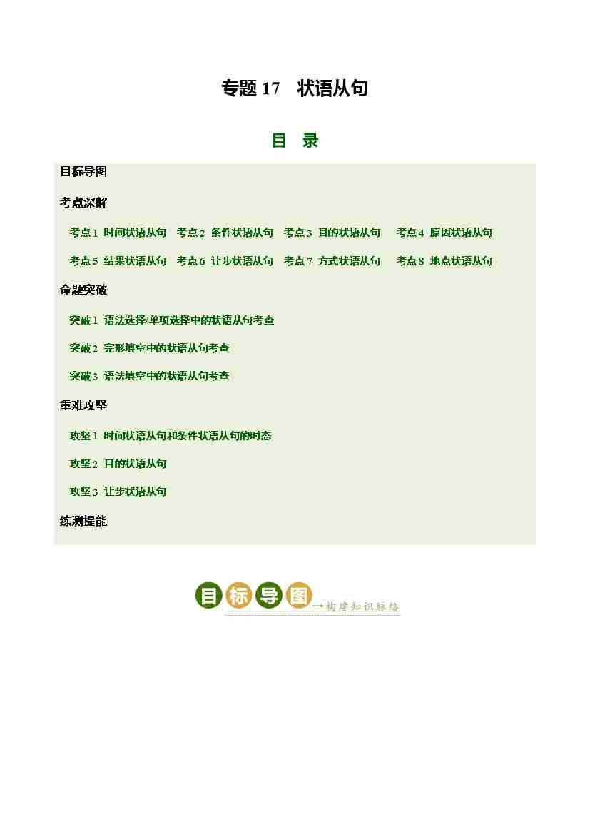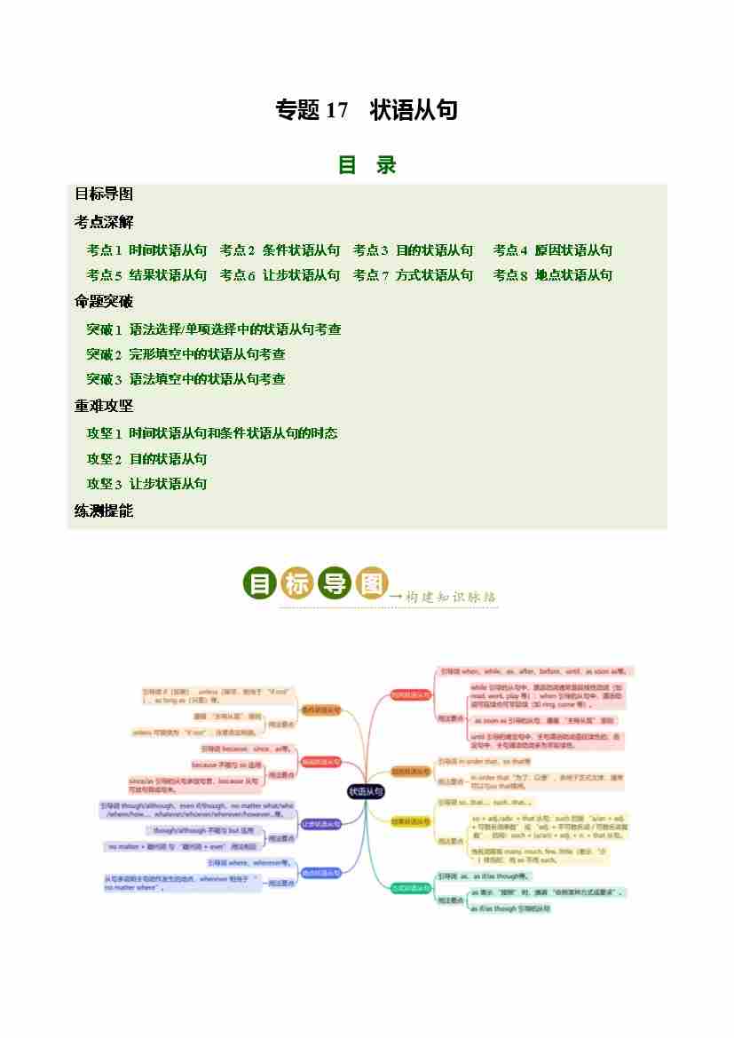 Part 1 核心语法精讲专题专题17 状语从句(培优讲义)(全国通用)(原卷版)
