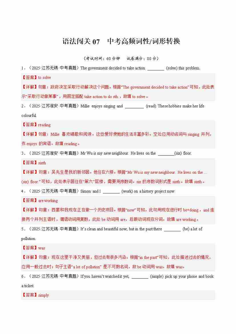 Part 3 词汇语法综合练语法闯关语法闯关07 中考高频词性(词形)转换(培优综合训练)(全国通用)(解析版)