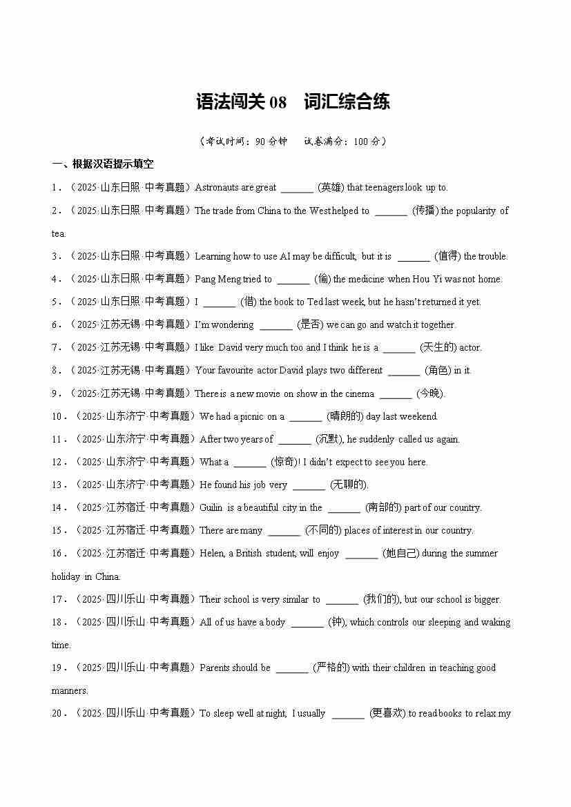 Part 3 词汇语法综合练语法闯关语法闯关08 词汇综合练(培优综合训练)(全国通用)(原卷版)