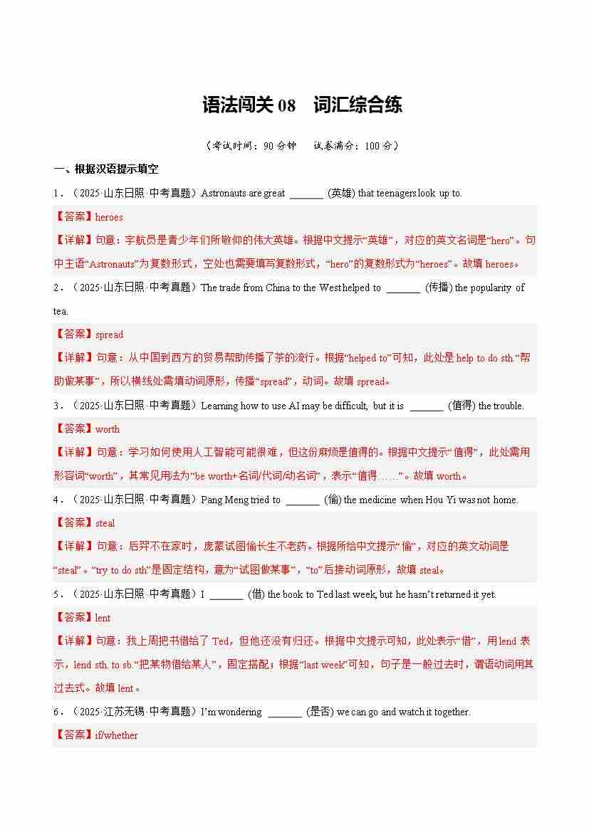 Part 3 词汇语法综合练语法闯关语法闯关08 词汇综合练(培优综合训练)(全国通用)(解析版)