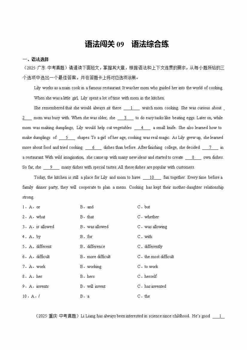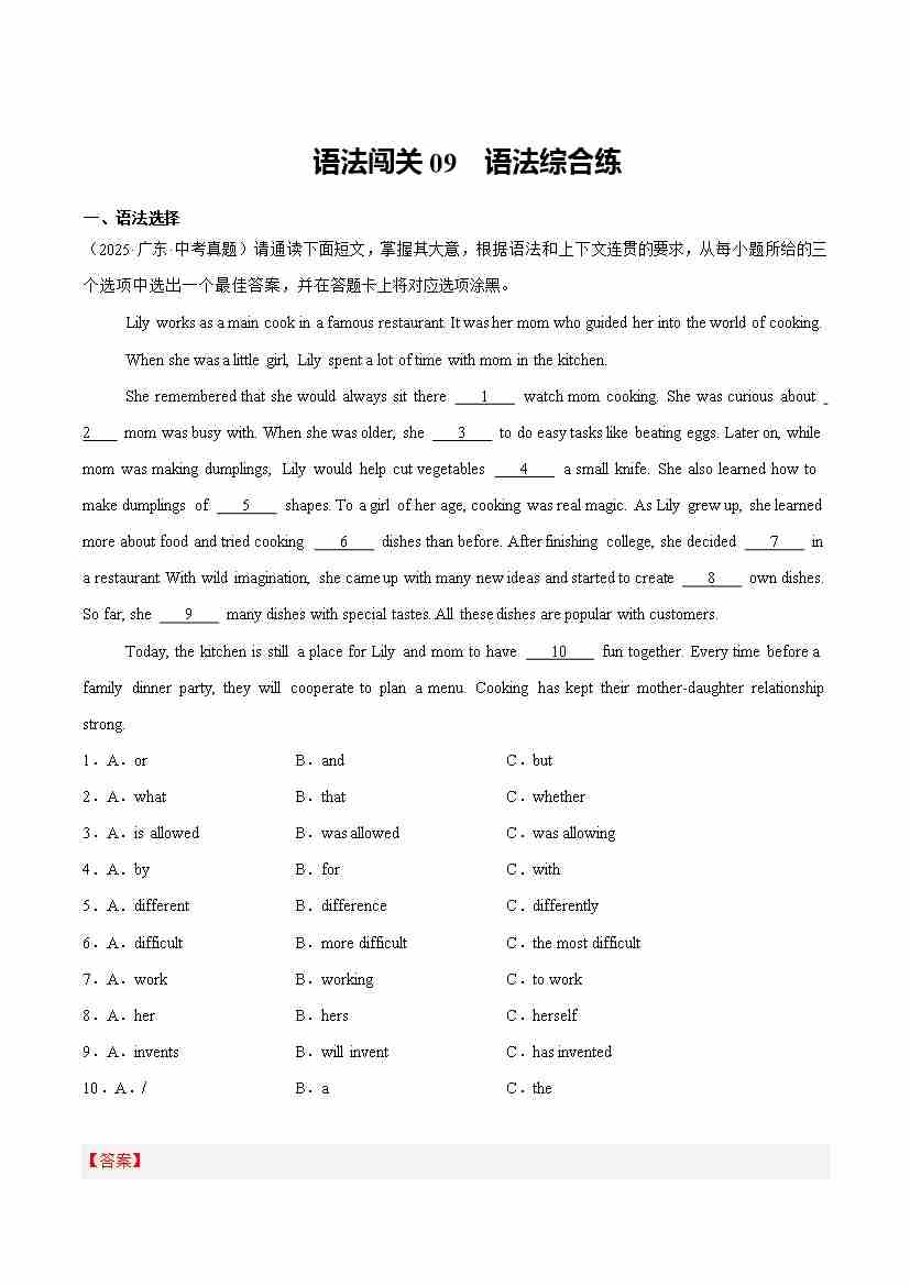 Part 3 词汇语法综合练语法闯关语法闯关09 语法综合练(培优综合训练)(全国通用)(原卷版)