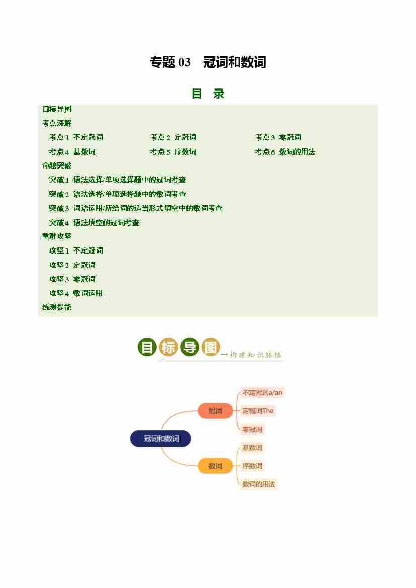 Part 1 核心语法精讲专题03 冠词和数词(培优讲义)(全国通用)(原卷版)
