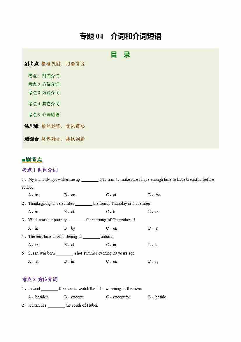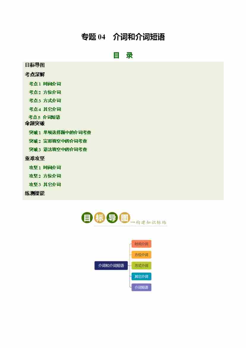 Part 1 核心语法精讲专题04 介词和介词短语(培优讲义)(全国通用)(原卷版)