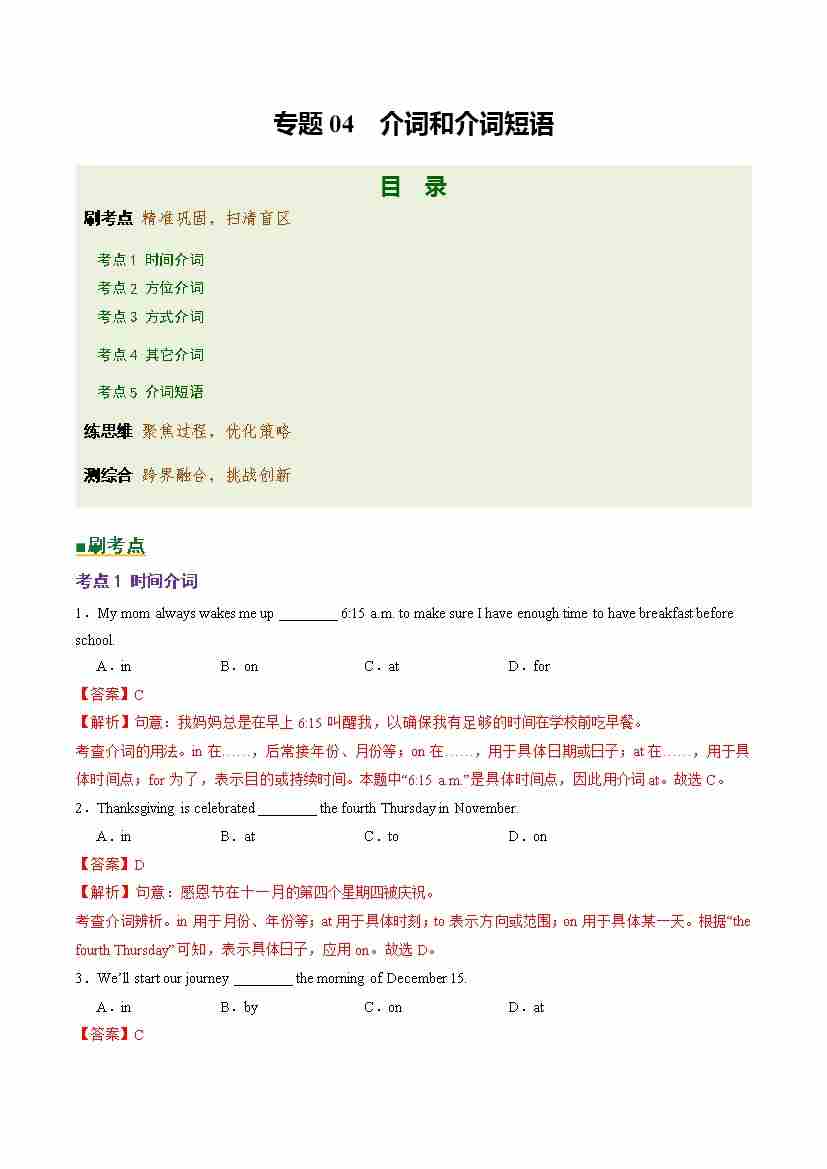 Part 1 核心语法精讲专题04 介词和介词短语(培优专练)(全国通用)(解析版)
