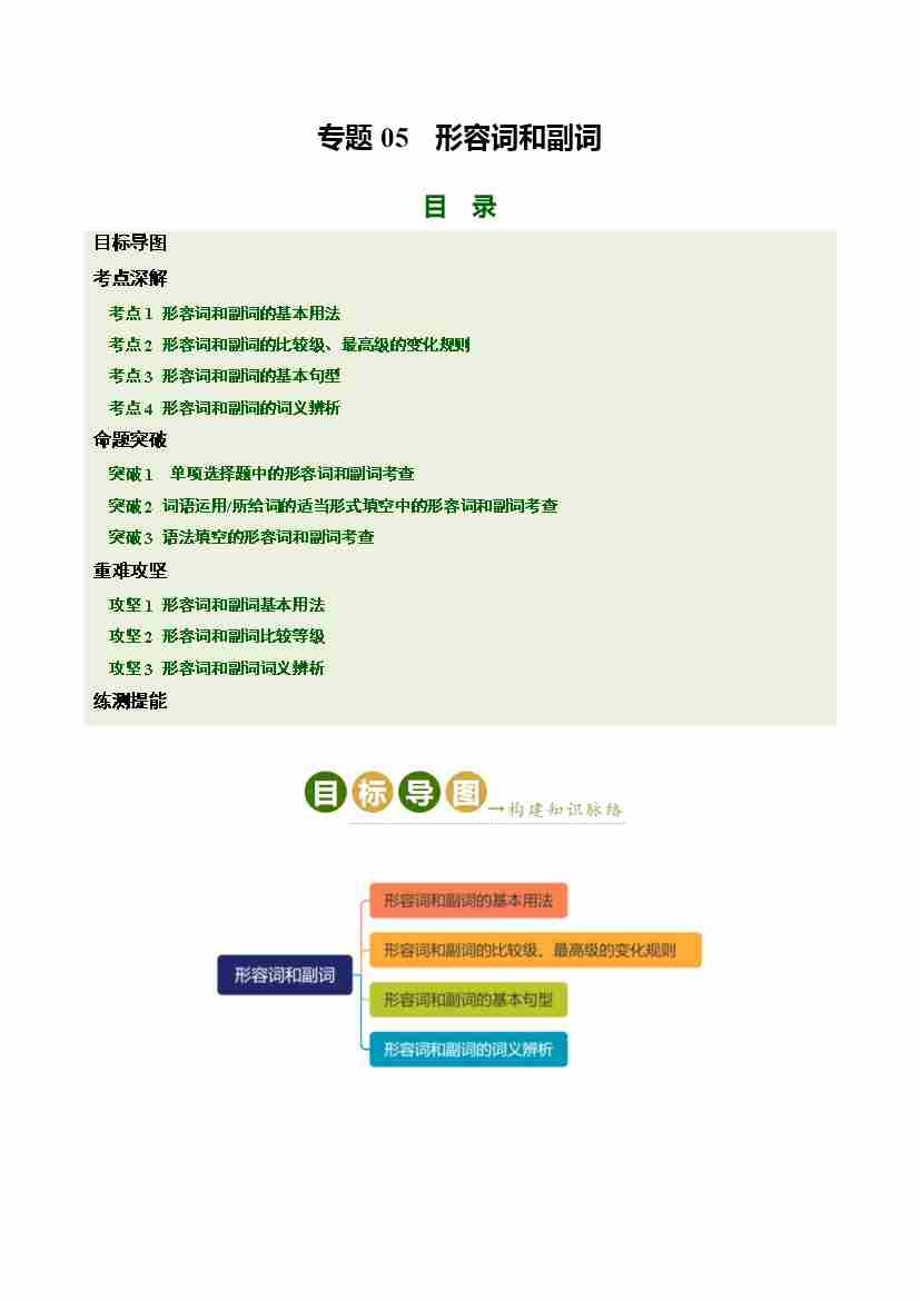 Part 1 核心语法精讲专题05 形容词和副词(培优讲义)(全国通用)(原卷版)